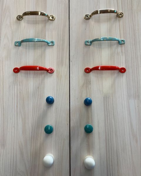 ホワイト塗装仕上げ、ブルーのツマミでマリンテイストです。